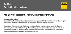 Freundlichkeit, Teamfähigkeit und Organisationsvermögen sind für Sie kein Fremdwort. Dann beginnt Ihre Karriere genau jetzt. Kommen Sie in unser Team der CarComplete24 GmbH.